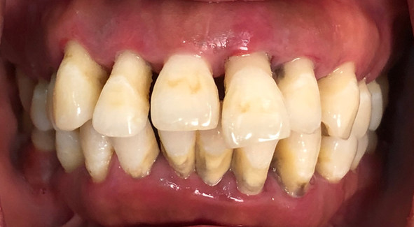 遗憾的是当时S小姐的每一颗牙齿都已经处于摇摇欲坠的状态了,牙槽骨严重萎缩,并有较严重的牙周炎,影响了牙龈的颜色和口气。这导致简单的牙齿矫正或者牙齿贴片等传统的笑容改造项目已经无法帮助到她,她即将面对的是全口拔牙后进行牙齿种植,以达到全口重建的目的。